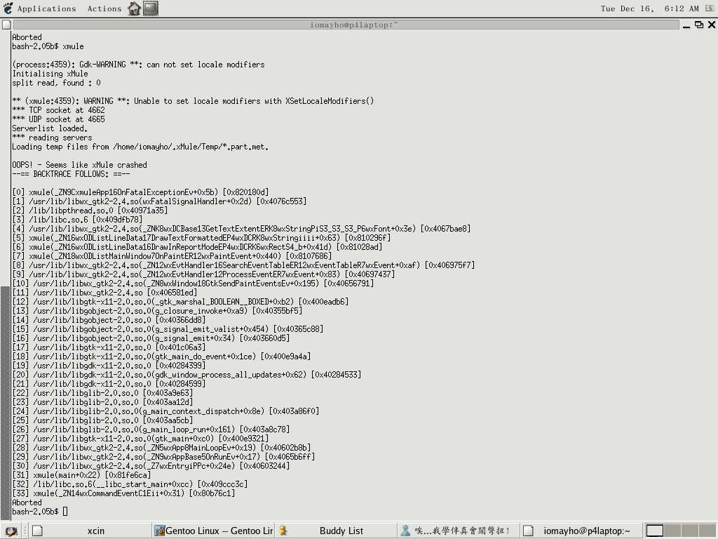techquilla Posted December 15, 2003 Share Posted December 15, 2003 xmule just keeps on closing automatically everytime i open it up.. don't know why.. here is the error... Link to comment Share on other sites More sharing options...