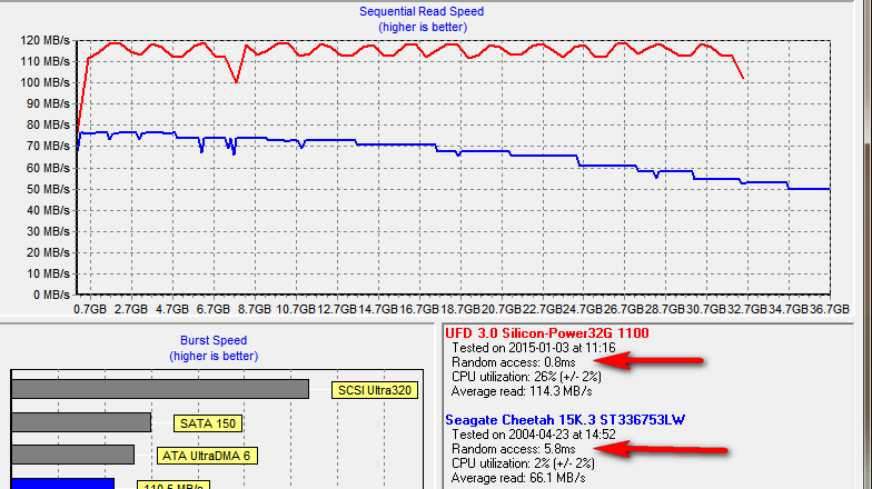 +BudMan MVC Posted January 3, 2015 MVC Share Posted January 3, 2015 "but man is it fast." Sorry but fast in terms of what how fast the disks spin? How fast it heats up the room? Here is benchmark of disk talking about - which yes in its day was a rocket ship.. 15 years ago http://www.tomshardware.com/reviews/a-scsi,284-3.html That is seq reads at what 40MBps best speed across the disk.. Here is my my $15 32GB thumbdrive compared to a scsi disk that was 15RPM and 4 years newer.. Do we really want to compare it to SSD? While these disks were lightening in their day - I remember hooking up lots of these.. Matter of fact I have some 16 and 9Gigers in my garage - box of them.. I don't know why I keep them around, but I had grabbed them when we moved on at the company to newer tech.. They wee still someone decent back then.. But when I can get better performance out of a $20 item that I carry around in my pocket - WTF would I spend any time on trying to get an old one of these to work for? Other than some sort of hobby - which is great, more power to you.. But might have more fun just collecting stamps - atleast those would have some value as they got older.. These sorts of disks are just worthless junk.. Shoot found the hd tach used in that old benchmark, version 3 which was like 2007 version had to run in comp mode to get it run even, etc.. goretsky 1 Share Link to comment Share on other sites More sharing options...