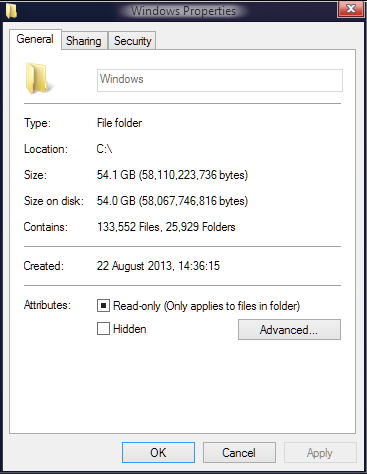 Clean Windows 8 install taking up 54GB