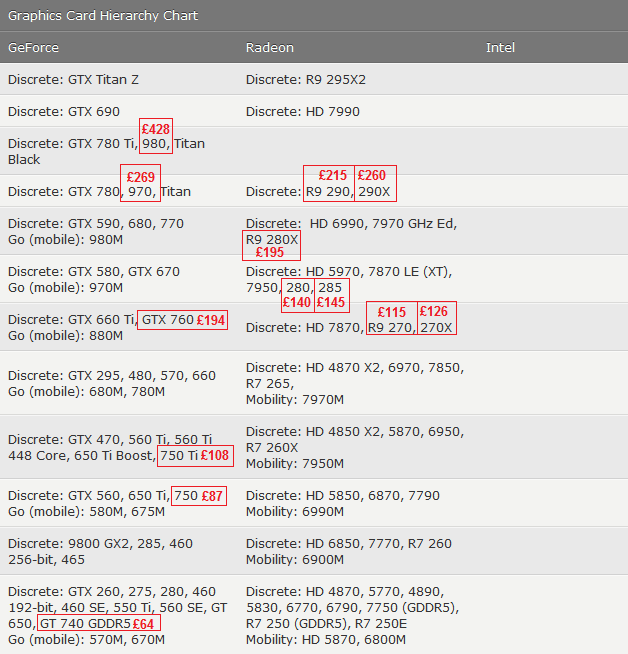 Elliot B. Posted January 26, 2015 Share Posted January 26, 2015 I made this for myself, thought it could be interesting for you guys also The prices are the starting price for that model, all taken from Ebuyer The chart is from Tom's Hardware. Link to comment Share on other sites More sharing options...