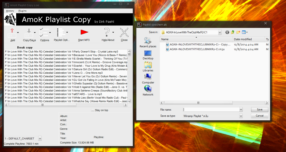 remixedcat Posted February 25, 2015 Share Posted February 25, 2015 Amok Playlist Copy. I use it to transfer my Jriver playlists to my android. it does proper file indexing too so if you have let's say 3 of the same song in 3 playlists but don't want 3 copies of the same song to waste space it will add them to the playlist like this: #EXTM3U #Created with AmoK Playlist Copy 2.06 Party Doesn't Stop - Crystal Lake.mp3 Because I Love You (Rocco & Bass-T Remix).mp3 E-Strella Meets Scarlet - Thinking Of You (Ti-Mo ReMiX).mp3 Innocent (Cc.K Remix) - Groove Coverage.mp3 Scarlet - Your Love Is My Drug (Kris Mctain & B-Tastic Remix).mp3 Sakura Girl (DJ Gollum Radio Edit) - Commercial Club Crew Vs. Clubhunter.mp3 Jens O. - One More.mp3 Never Let You Go (DJ Gollum Remix) - Seven Oh.mp3 so if those songs are in one location but not the other in the same directory the playlist is the player will just play the song regardless of where it's located. other playlist utils will put directories in front of the file names and that leaves dead links This is how jriver does the playlist format and you can see it's location sensitive: #EXTM3U #EXTINF:209,Party Doesn't Stop - Crystal Lake F:\In Love With The Club Mix R2-Celestial Celebration Vol 1\Party Doesn't Stop - Crystal Lake.mp3 #EXTINF:311,Because I Love You (Rocco & Bass-T's Jump Remix) - Groove Coverage F:\In Love With The Club Mix R2-Celestial Celebration Vol 1\Because I Love You (Rocco & Bass-T Remix).mp3 #EXTINF:277,Thinking Of You (Ti-Mo ReMiX) - E-Strella Meets Scarlet F:\In Love With The Club Mix R2-Celestial Celebration Vol 1\E-Strella Meets Scarlet - Thinking Of You (Ti-Mo ReMiX).mp3 #EXTINF:298,Innocent (Cc.K Remix) - Groove Coverage F:\In Love With The Club Mix R2-Celestial Celebration Vol 1\Innocent (Cc.K Remix) - Groove Coverage.mp3 #EXTINF:290,Your Love Is My Drug (Kris Mctain & B-Tastic Remix) - Scarlet F:\In Love With The Club Mix R2-Celestial Celebration Vol 1\Scarlet - Your Love Is My Drug (Kris Mctain & B-Tastic Remix).mp3 #EXTINF:184,Sakura Girl (DJ Gollum Radio Edit) - Commercial Club Crew Vs. Clubhunter F:\In Love With The Club Mix R2-Celestial Celebration Vol 1\Sakura Girl (DJ Gollum Radio Edit) - Commercial Club Crew Vs. Clubhunter.mp3 #EXTINF:185,One More - Jens O. F:\In Love With The Club Mix R2-Celestial Celebration Vol 1\Jens O. - One More.mp3 #EXTINF:309,Never Let You Go (DJ Gollum Remix) - Seven Oh Like if I have>> Party Doesn't Stop - Crystal Lake.mp3 in 3 playlists I don't have to have it in all 3 directories... just one of those. Link to comment Share on other sites More sharing options...