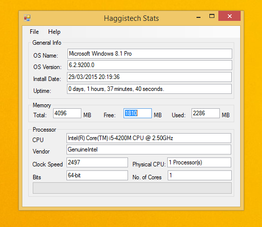 Haggis Veteran Posted April 7, 2015 Author Veteran Share Posted April 7, 2015 Thought this was going to be statistics for how many Scots love haggis were you disappointed? lol another update i added System Install Date System Uptime +Audioboxer, +Zlip792 and Skiver 3 Share Link to comment Share on other sites More sharing options...