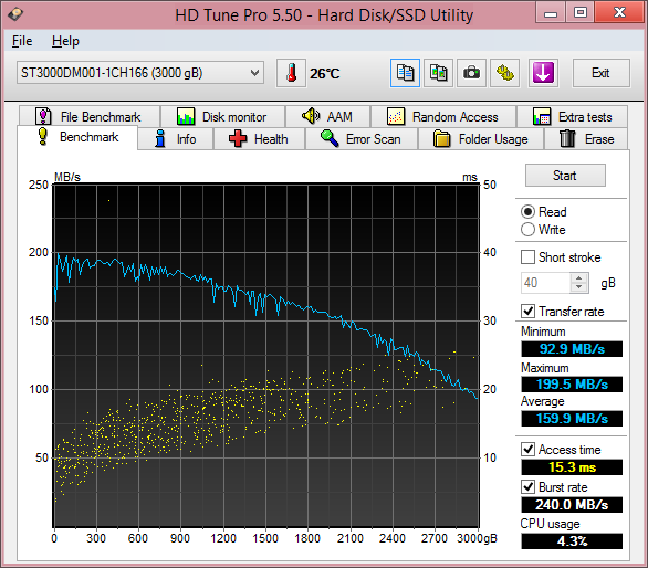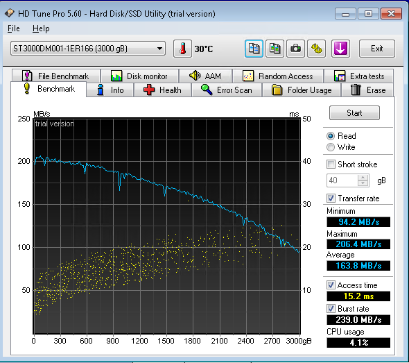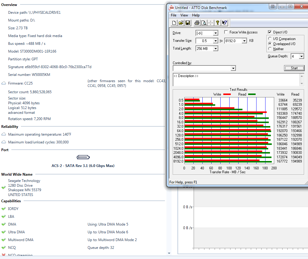 +BudMan MVC Posted May 19, 2015 MVC Share Posted May 19, 2015 "The more you fill the drive the slower it gets for mechanical reasons" Where did you pick up that little nugget of FUD? He is not talking SSD.. Benchmarking shouldn't care if the disk is full or not.. Now can overall performance of the machine if you run your OS disk at 99% full.. ok, is it going to be fragged to all hell at that state most likely.. Shouldn't run your disks at 100% capacity no - but I doubt he is, it shouldn't make that sort of difference on his benchmarks that is for sure. So here is my ST3000DM001, it is not full, but it sure is not empty either and getting better speeds than what you showed you should get. What does the smart show for the disk, you mention sata but what speed I, II or III? Grab https://stablebit.com/Scanner they have a 30 day trial and you can get the smart info, details of the connection, etc. etc. Lets see what that shows... What is the controller on your MB, etc. Can you post up the details of your machine. Clearly something not quite right there.. Disk is possible of much better speeds. Also this is a refurb as well. Thee was a bug in some of their firmware that was constantly parking the heads.. You could see that in the smart info the LCC was out of this world when the drive was less than a year old.. I contacted them about it and they replaced it without issue. Have you grabbed their tools and ran a diag on it? Link to comment Share on other sites More sharing options...