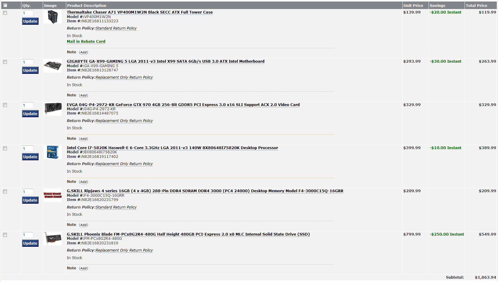 binaryzero Posted May 31, 2015 Author Share Posted May 31, 2015 http://www.pccasegear.com/index.php?main_page=wish_lists&wlcId=364759&action=wish_lists Thoughts. Link to comment Share on other sites More sharing options...