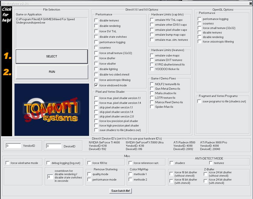 shaolinmonk Posted December 24, 2003 Share Posted December 24, 2003 I play NFSU in winowed mode all the time... just get this program.. 3d analyze or something like that and select the exe.. and make sure you click forced window mode as shown in the picture, then click run. Link to comment Share on other sites More sharing options...