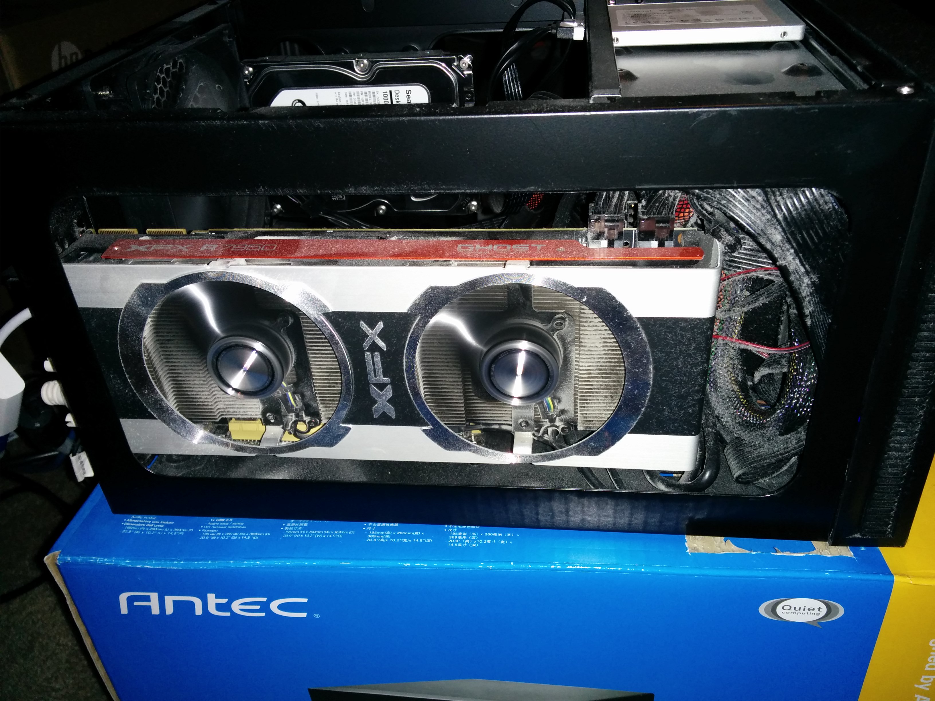 Circaflex Posted June 20, 2015 Share Posted June 20, 2015 Well, you have already mentioned dust, but that would be the first thing to eliminate as it acts as an insulator. You could also invest in a better air cooling solution, or a better solution might be one of the corsair all-in-one watercooling units. It is hard for me to judge based solely on pictures, but is the only fan that is pushing air into the case, the PSU fan? And your exhaust is the fan near the CPU cooler? If it were me, i would look into hacking up the side window and adding some sort of fan there, or if you can find a couple of Antec Spotcool's they would be small enough to add within your case and get some more air flowing. Or if you are handy, have you thought about adding a fan or two to the top piece of the casing? Not sure what tools you have available, or your skillset, but that would easily allow some of that hot air to leave the system. Link to comment Share on other sites More sharing options...