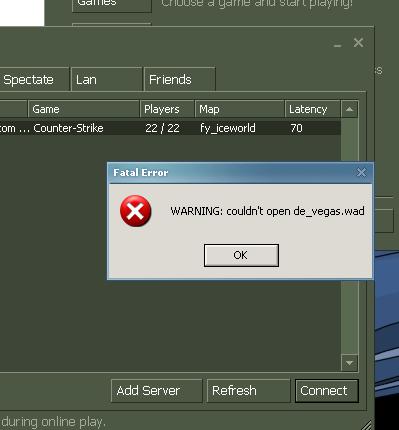 psychoticDEMENTO Posted December 28, 2003 Share Posted December 28, 2003 .wad's are files that contain all the texture information. .bsp's are the maps themselves. obviously the map that is being played uses some of these textures. go into your CS install directory and look for de_vegas.wad...if u cannot find it, then use windows search tool and look for the exact filename. if it is off somewhere else, put it back in the CS install directory and for good measure, the HL install directory. (copy and paste) hope that helps. Link to comment Share on other sites More sharing options...