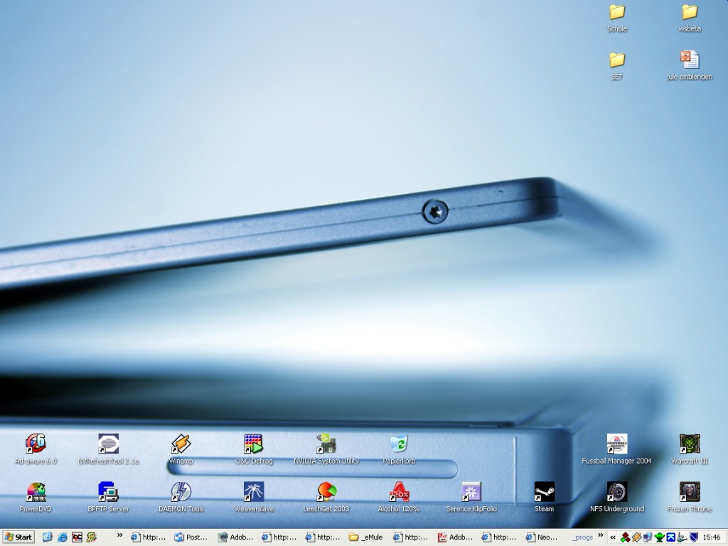 dewy Posted December 31, 2003 Share Posted December 31, 2003 Visual Style: Windows Clasic Wallpaper: Wave.jpg by ??? Cursors: Theme North by Theme North Running Programs: PSI (A Jabber Client), Mozilla Firebird (Lates Nightly), Enemy Territory Minimiser ( By: http://www.gonbon.com), Virtual Daemon Manager, Norton AintiVirus 2003, OpenOffice.org 1.1.0 Quick Starter. On Task Bar CD icon is a shortcut to a *.vbs to eject my newly steathled CD Rom Drive :D. The VBS Code if any one want's Set oWMP = CreateObject("WMPlayer.OCX.7" ) Set colCDROMs = oWMP.cdromCollection colCDROMs.Item(1).Eject 'Eject second drive Click To Make Bigger Link to comment Share on other sites More sharing options...