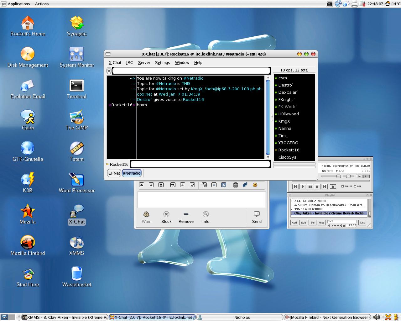 TimeShot Posted January 9, 2004 Share Posted January 9, 2004 Those themes (Milk and GlossyP) use the same gtkrc file - probably there is an error. I just figured out what setting faults the ugly error in X-Chat: Go to Settings > Preferences > Interface > Colors and change the background color. You could try to change this color to the grey one as the windows, but that'll change the background of the chatbox, too. Maybe you make a 100%-black picture and set this as the background in X-Chat. Link to comment Share on other sites More sharing options...