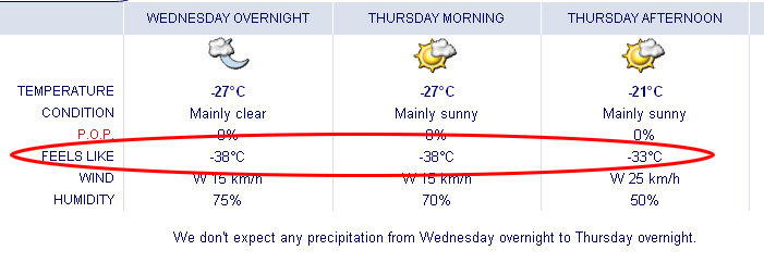 bayrider Posted January 8, 2004 Share Posted January 8, 2004 In Montreal, Quebec tonight its supposed to reach -38c with the wind. Just FYI, the farenheit and celcius scale meet at -40!! I can hear the wood in the walls creaking from the cold! Link to comment Share on other sites More sharing options...
