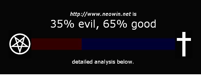johngalt Posted January 9, 2004 Share Posted January 9, 2004 You asked.... http://www.microsoft.com is 58% evil, 42% good detailed analysis below. If you are in control of the website analyzed, you might want to use these banners to display display the rating. Copy and paste the xhtml code into your website. If you wish to copy the image file onto your server, you are free to do so, but please keep the link intact. Link to comment Share on other sites More sharing options...