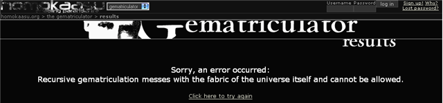 biorK Posted January 8, 2004 Share Posted January 8, 2004 Hehe found this webpage: The Gematriculator Pretty funny thing: Maybe wanna try your private website to see just how evil it is? :p *EDIT sry if this is old news... Link to comment Share on other sites More sharing options...