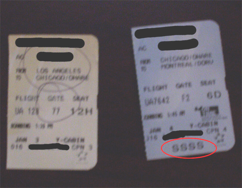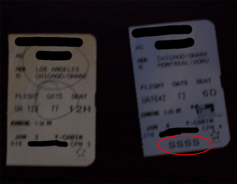 bayrider Posted January 12, 2004 Share Posted January 12, 2004 Anyone flying sometime soon? heres a cool little tip about being randomly searched at the airport. I was told by someone that when you get your boarding pass at the airport, the computer that prints out the boarding passes randomly insert a code on your pass which means you will be searched. it is 4 S's (SSSS). i didnt beleive it at first but when i came home and looked at my boarding passes i realized he was right. i flew from LA to Chicago to Mtl. I got searched in Chicago.. in the picture the blue ticket is from chicago where i got searched. Link to comment Share on other sites More sharing options...