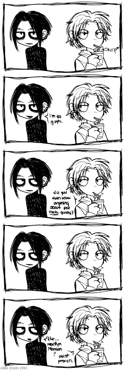 Fusion Posted January 27, 2004 Share Posted January 27, 2004 Well I had a whole post written up about every issue I have with the gothic subculture but i think most of it has been exausted already in this thread so I will just post one of my main annoyances. Why is it that most Goths I meet think that just because they wear black clothes with patches and safety pins, it makes them somehow more deep and intellegent than the rest of us. Many goths seem to adhere to this mentality. That they are some how more unique and intelligent than the rest of us. Not only is this insulting, but blatantly false. Ironically, since most goths (and by "goths," I refer to their "culture" or "subculture" as they've defined it) seem to think that they are somehow more intelligent, interesting and/or creative than the rest of us, this alludes to another character trait entirely, or namely, arrogance. Boring, arrogant, uninteresting, un-innovative gothics, whether "true" gothics or not. Link to comment Share on other sites More sharing options...