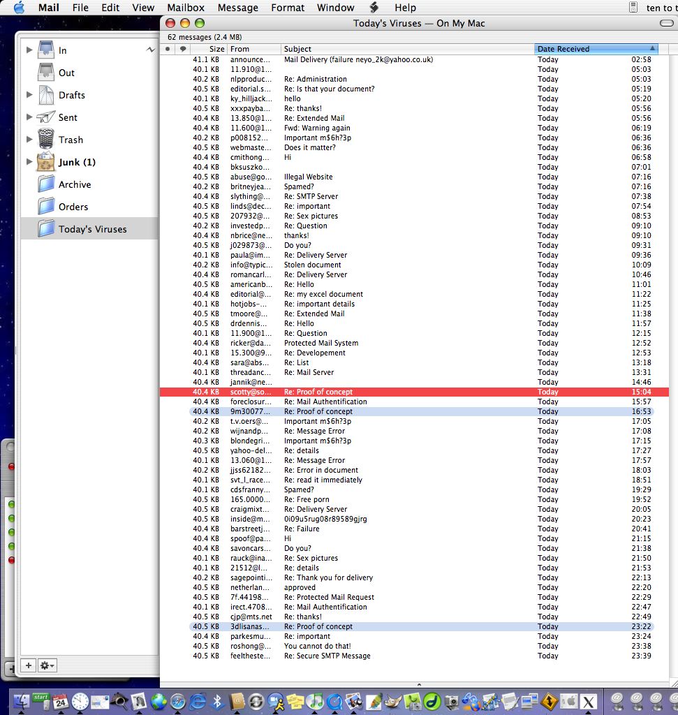 aristotle-dude Posted March 29, 2004 Share Posted March 29, 2004 I was getting 500 per day for a while. Look at it this way, at least you cannot get infected by any of them. Link to comment Share on other sites More sharing options...