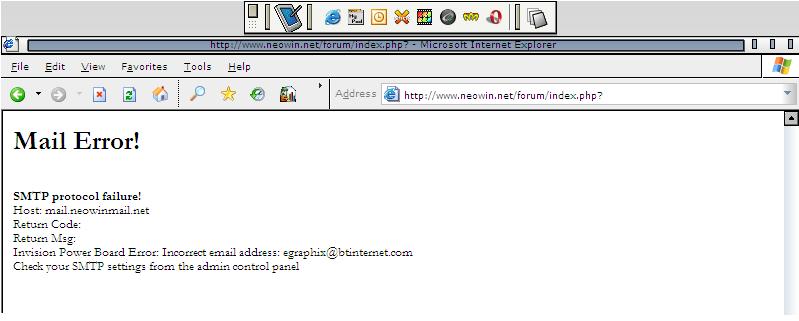 SMeK Veteran Posted April 9, 2004 Veteran Share Posted April 9, 2004 ive had the error twice now Mail Error!SMTP protocol failure! Host: localhost Return Code: 550 Return Msg: 550-Verification failed for 550-unrouteable mail domain "neowin.netn" 550 Sender verify failed Invision Power Board Error: Incorrect email address: <snip> Check your SMTP settings from the admin control panel the one above included dazzla's e-mail for some reason Mail Error! SMTP protocol failure! Host: mail.neowinmail.net Return Code: 503 Return Msg: 503 AUTH command used when not advertised Invision Power Board Error: This server does not support authorisation Check your SMTP settings from the admin control panel the one above happened whilst trying to send a pm Link to comment Share on other sites More sharing options...