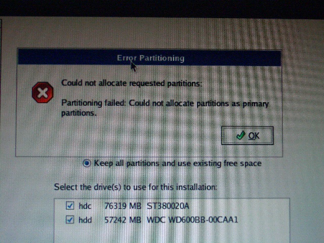 markwolfe Veteran Posted April 16, 2004 Veteran Share Posted April 16, 2004 Do you already have four used primary partitions? If so then you have a small problem.To get more than four, one partition has to be a 'comtainer partition' that conains secondary partitions. This is due to the inistial design constraints by (I believe) IBM. Dan. I think Dan is onto the problem. BIOS has restrictions on how it accesses the hard drives. Can you post what your partitioning looks like (Windows & Linux)? Link to comment Share on other sites More sharing options...