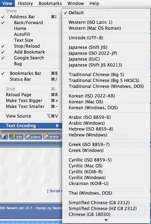 iAlphan Posted May 9, 2004 Share Posted May 9, 2004 Hello Everyone, I am having a problem with my safari's text encoding. For some reason it's in a different language (arabic) or something? I tried reseting Safari and changed the text encoding but it's still the same. Does anyone know anything about this? Here is the screenshot! Thanks Link to comment Share on other sites More sharing options...