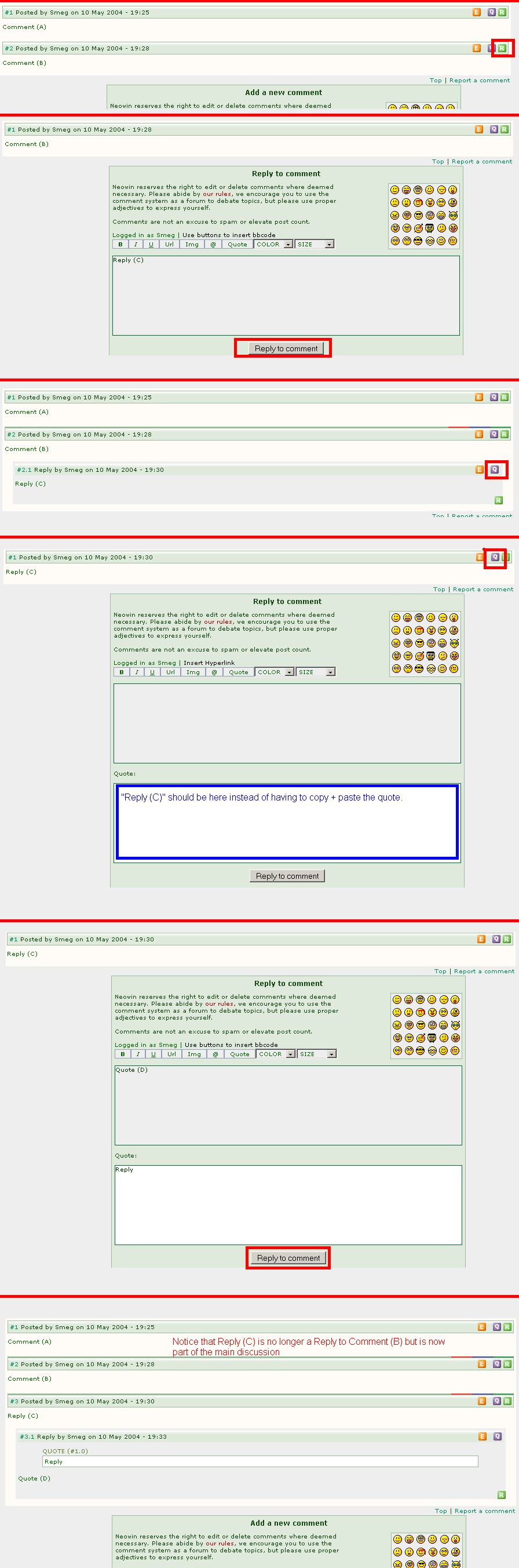 Japlabot Posted May 10, 2004 Share Posted May 10, 2004 A) When clicking , the quote not alread filled in. B) If you click to a Reply already posted, and the press again on the new screen, and then reply with the new page, than the Reply that you were quoting becomes a Post in the regular discussion and not a Reply anymore. Link to comment Share on other sites More sharing options...