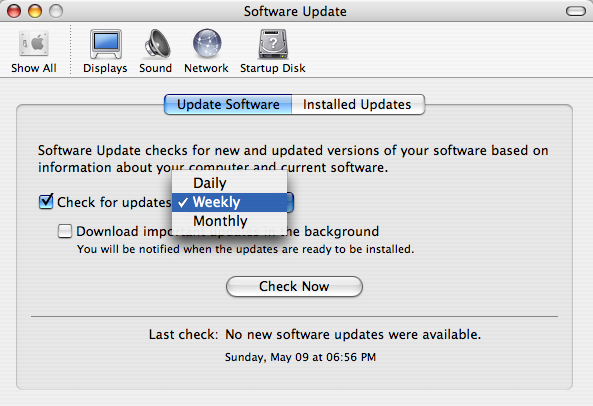 krmathis Posted May 13, 2004 Share Posted May 13, 2004 1. I prefer Mozilla Firefox, but a lot of people prefer Safari or Opera! 2. & 3. Already answered. 4. Updates are an option the first time you boot your computer. Then afterwards you set the options like this: Link to comment Share on other sites More sharing options...