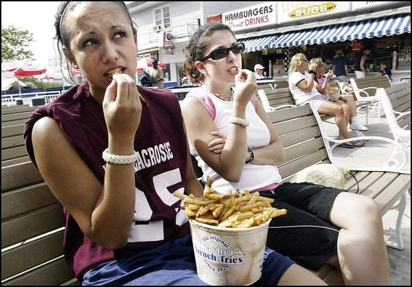 JohnsonBox Posted May 29, 2004 Share Posted May 29, 2004 Beachgoers Diving Into Buckets of Fries After 70 Years, Thrasher's Still Hot By Eric Rich Washington Post Staff Writer Saturday, May 29, 2004; Page B01 OCEAN CITY, May 28 -- Diets be damned. Thrasher's french fries, available on the boardwalk for more than seven decades, are here to stay no matter what the surgeon general thinks about eating fried foods by the bucket. "To me, they're the best fries in America," said Scott Kinsey, a tourist in from Reading, Pa. "These are the best in the world," said Kitty Joan Langley, down from Newark, Del. http://www.washingtonpost.com/wp-dyn/artic...-2004May28.html Attachch pic: Kelly Nichols, left, and Lydia Figueroa of Anne Arundel County, work on a "cup" of Thrasher's fries on the boardwalk in Ocean City. (Mark Gail -- The Washington Post) Go Ocean City and try to taste it. :p Link to comment Share on other sites More sharing options...