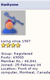 Hankyone Posted June 3, 2004 Share Posted June 3, 2004 GO YOU!!! EDIT:was bored Link to comment Share on other sites More sharing options...