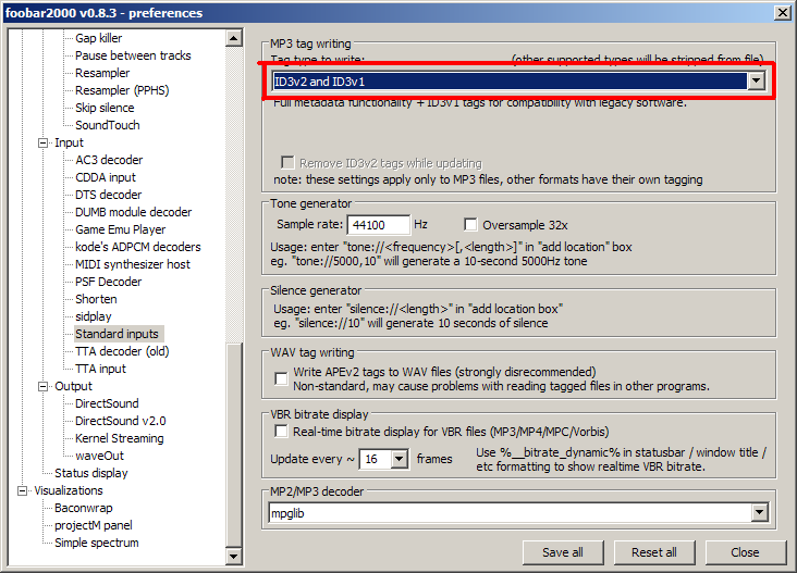 Favvi Posted December 18, 2005 Share Posted December 18, 2005 Foobar, by default, uses APEv2 and ID3v1 tags. You can set it to use ID3v2 instead here: thanks for clarifying that for me ;) Link to comment Share on other sites More sharing options...