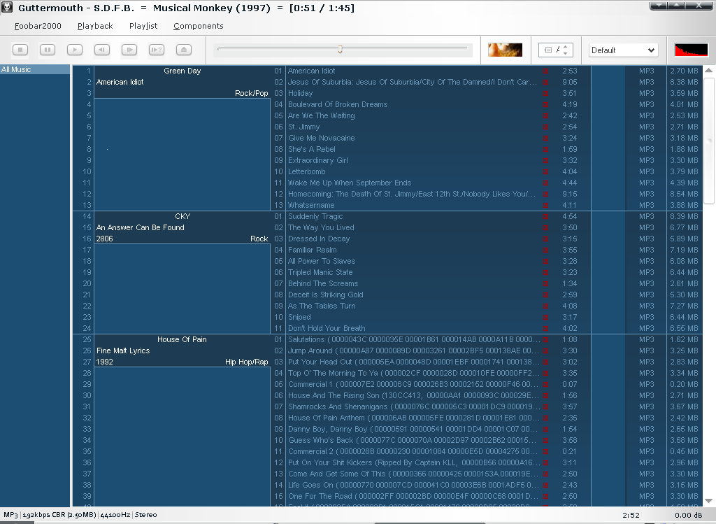 TheUndead Posted January 15, 2006 Share Posted January 15, 2006 do what? make my foobar look like that? well, its nothing really, just columns_ui and my own fcs, and some colour mix and match :happy: Link to comment Share on other sites More sharing options...