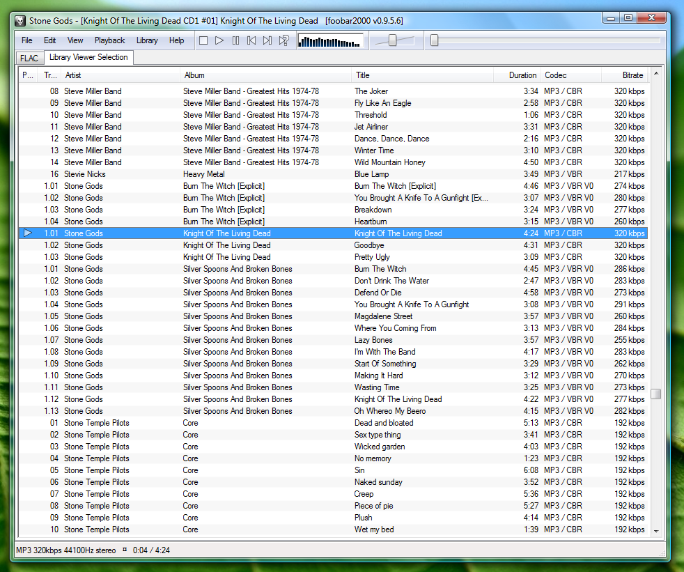+unabatedshagie Subscriber¹ Posted October 17, 2008 Subscriber¹ Share Posted October 17, 2008 have you seen mines ? it's ELPlaylist that i use in my configs IBIZA and Kung-Foo ... just check "hydrogenaudio foobar forum" or deviantart.com to get them.i don't know what is decent for you, but this is how ELPlaylist looks in IBIZA config : Br3tt Yeah I have, those are actually the only couple I have seen.Problem is they are a little on the dark side for my tastes. I might take a look at the code over the weekend and see if I can lighten them up a bit. Link to comment Share on other sites More sharing options...