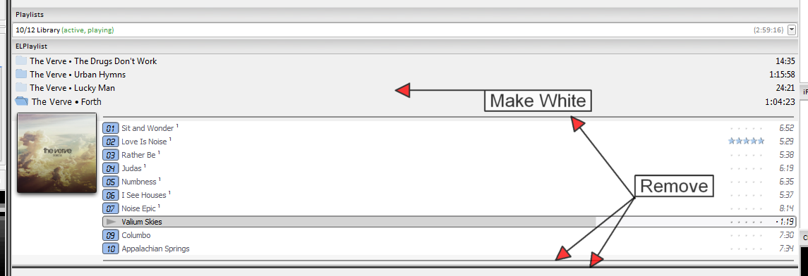 12345678 Posted September 22, 2008 Share Posted September 22, 2008 (edited) original my foobar2000 So how can I change the colour of the playlist items, like track playing, albuns and the other tracks like in the original skin by bbmartini? help me, please !! thank Edited September 22, 2008 by 12345678 Link to comment Share on other sites More sharing options...