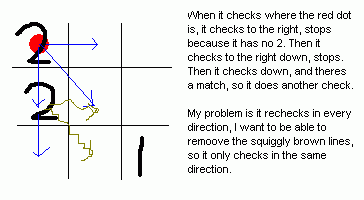 Ive only recently got it semi working, but it classes something as a 3 in a row when it isnt. The reason why is that it is checking for matches next to a piece, then checking for matches to that match, but for the second check, i need it to only check in the same direction.