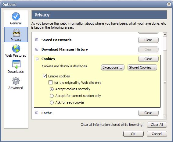bangbang023 Veteran Posted June 14, 2004 Veteran Share Posted June 14, 2004 check the cookie options in the options panel. Should look something like this: Link to comment Share on other sites More sharing options...
