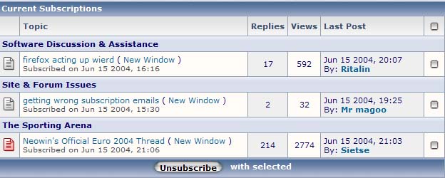 john smith 1924 Veteran Posted June 15, 2004 Veteran Share Posted June 15, 2004 yeah, go to your profile and check the subscriptions section. Link to comment Share on other sites More sharing options...
