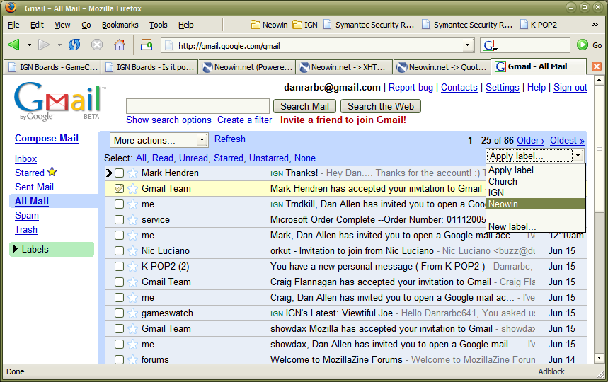 Danrarbc Posted June 16, 2004 Share Posted June 16, 2004 Whats wrong with labels though? They seem to work just like folders for me. You can manually apply labels (ie 'move' it to a folder), and you can set up filters like I have. I have a Neowin label, one for church, and one for IGN. and you have to go into the email to label it. Have you tried selecting the checkbox next to a message and they using the 'Apply label' drop down on the right side? Link to comment Share on other sites More sharing options...
