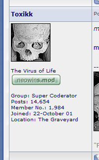 Toxikk Veteran Posted June 18, 2004 Veteran Share Posted June 18, 2004 it's Toxikk and my group was created because i am working with site code. i should have my new badge soon :) Link to comment Share on other sites More sharing options...