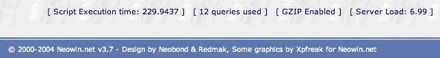 pimpshiznid Posted July 18, 2004 Share Posted July 18, 2004 I guess mine is the only one still utterly fubared, huh? Here's my latest 2 page loads... [ Script Execution time: 59.7242 ] [ 11 queries used ] [ GZIP Enabled ] [ Server Load: 5.28 ] & [ Script Execution time: 19.2958 ] [ 12 queries used ] [ GZIP Enabled ] [ Server Load: 3.68 ] Link to comment Share on other sites More sharing options...