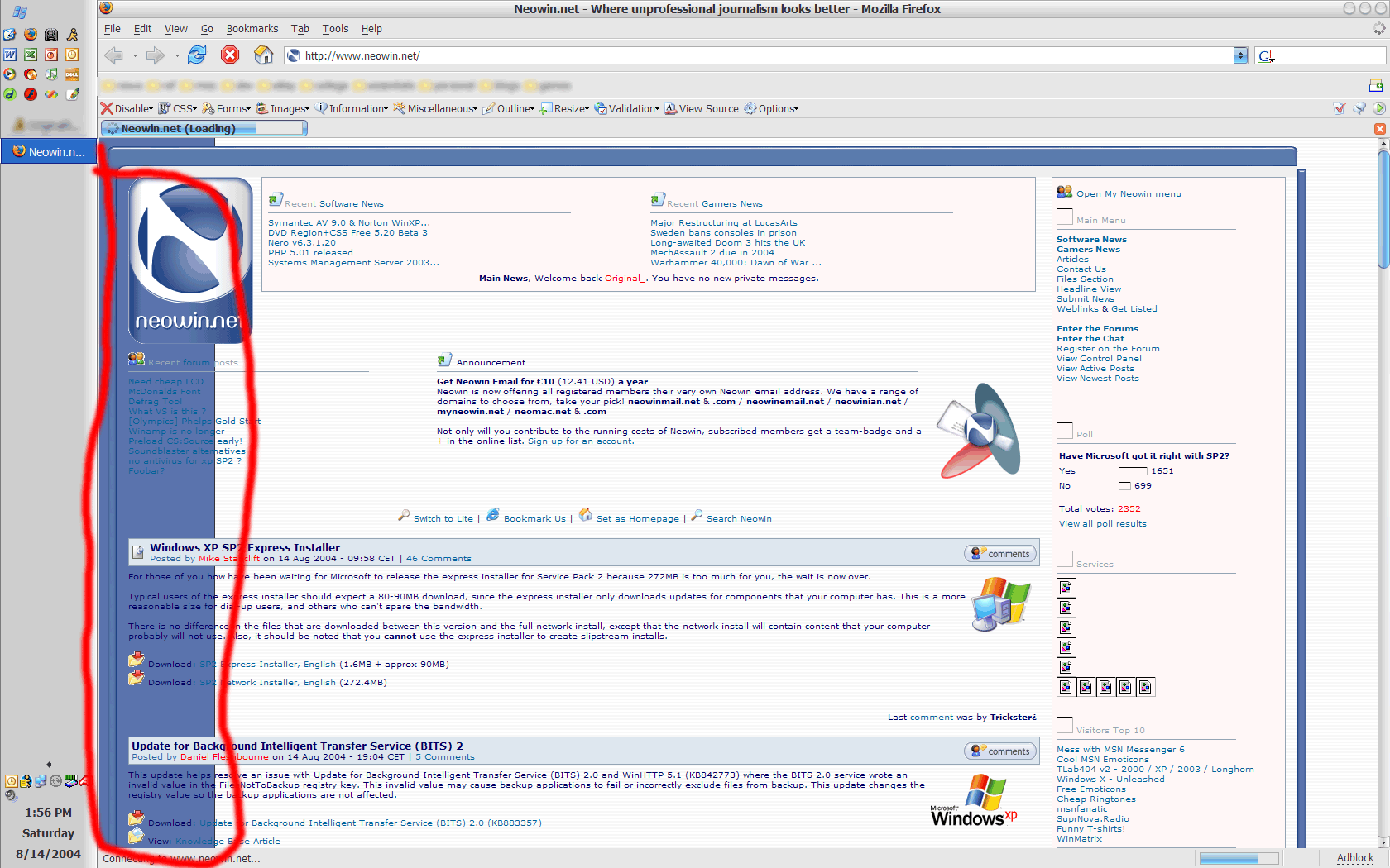 Original_ Posted August 14, 2004 Share Posted August 14, 2004 Most annoying thing (for me) is that the left side graphic loads last (see attached screenshot)... until it loads it is a solid blue background - which means you can't read the links. Any chance that it could be re-coded (it's about time Neowin switched to XHTML+CSS anyway) to have a white background until loaded? Link to comment Share on other sites More sharing options...