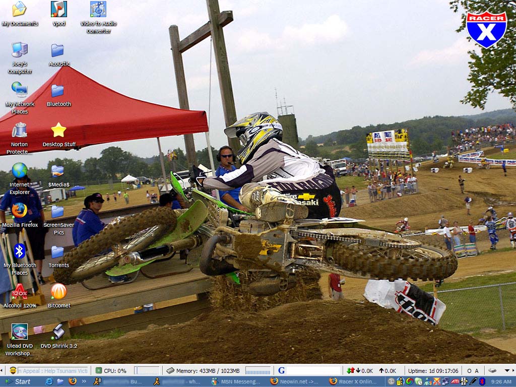 Fullcirclephoenix Posted December 31, 2004 Share Posted December 31, 2004 (edited) Here's my first entry for January 2005. My Desktop Theme Stuff ======== Visual Style: Longhorn Alternative Dark Icons: Default Windows XP Wallpaper: Spider-Man (cant remember where I got this from) Firefox Theme: Longhorn by KoL Winamp Skin: Spirit Black (lost my fracking link for this :wacko: ) Konfabulator: mini CPU, mini Digital Clock, mini Weather, mini Calendar, G-Mail Applications ======== Firefox 1.0, Internet Exploiter 6, MSN Messenger 6.2, Yahoo IM 6.0, Trillian 2.0, AIM 3.0, Code-Genie, Notepad (lol), CuteFTP, Napster 2.0, Winamp 5.08, Star Wars Galaxies, Enter the Matrix Beta, Grouper Beta 1.1 Edited December 31, 2004 by Fullcirclephoenix Link to comment Share on other sites More sharing options...