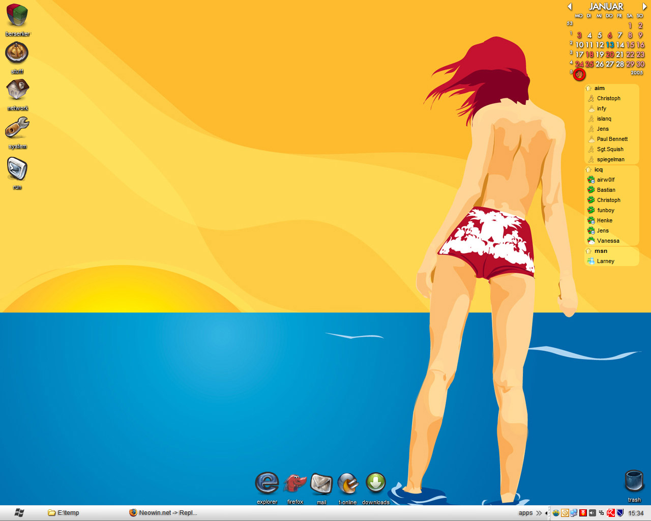 walkman Posted January 31, 2005 Share Posted January 31, 2005 Theme: Windows Classic wallpaper: Bikini + little mod App: Y`z Dock Icons: Pastels Link to comment Share on other sites More sharing options...