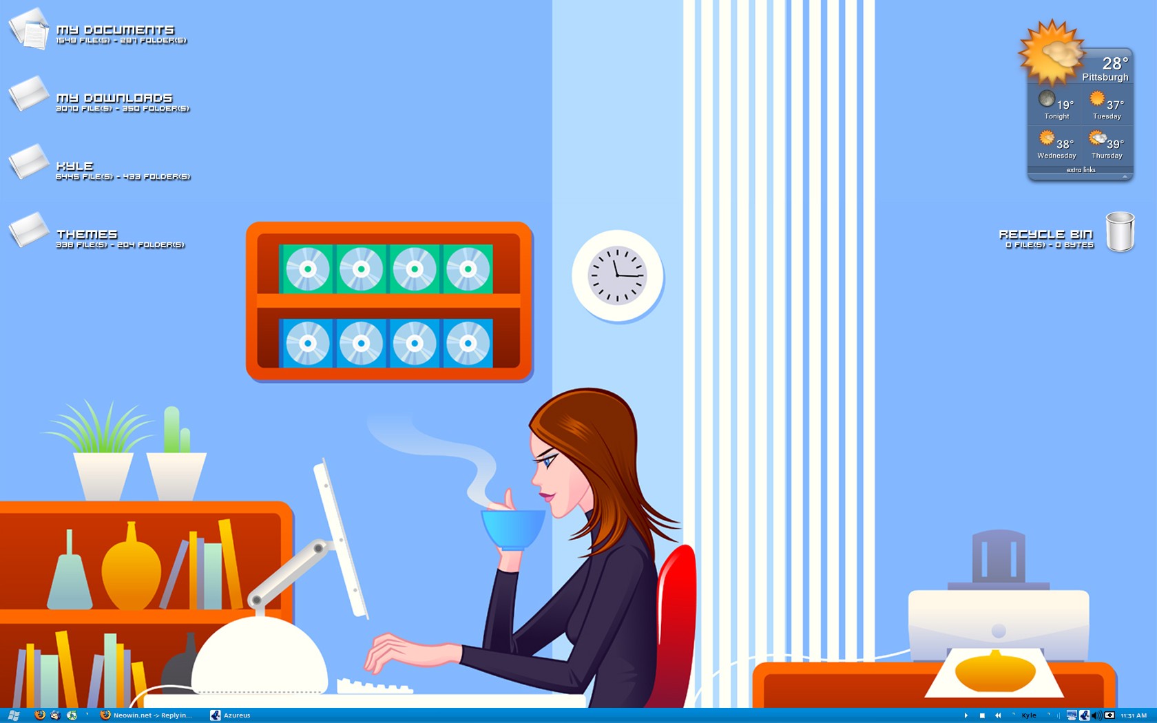 Keldyn Posted January 31, 2005 Share Posted January 31, 2005 February Desktops - 2005 Posting Guidelines: If you plan to img-embed your desktop, please try to keep it at/under 1024x768 and under 100k (It's recommended that you link it, externally). Stay within the board rules, no matter how yummy you may believe it to be. If you are going to quote, there isn't a need to quote an img-embeded picture - Just don't do it. Please just reference the post by page number/page link/etc. Off Topic Posts will be edited or removed. The desktops thread is not to be used as a means to post images of a pornographic or otherwise provocative nature. We do not support a babes forum and neither will we in an unofficial capacity. Please help to keep the thread relevant and safe to browse for everyone. The moderators of this forum reserve the right to edit or remove your posts as necessary so they may comply with our Community Ruleset. In the interests of keeping the thread on topic it is strongly urged that you format your posts in the following order: Visual Style: Name/where you got it (with link would be nice). Wallpaper: Name/where you got it (with link would be nice). Icons: Name/where you got it (with link would be nice). Programs: Name/where you got it (with link would be nice). A nice new month to show off your eye candy, let the desktops begin! :D Neowin recommends a home grown program, Neoshooter for taking screenshots. Link to comment Share on other sites More sharing options...