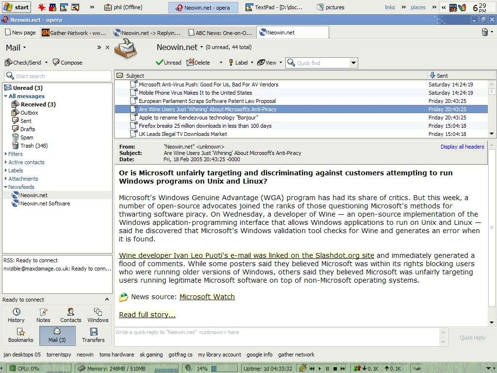 nvizible Posted February 20, 2005 Share Posted February 20, 2005 ok, here's mine! firstly just showing a page: and now showing my panels & rss in action: <3 it tbh :yes: Link to comment Share on other sites More sharing options...
