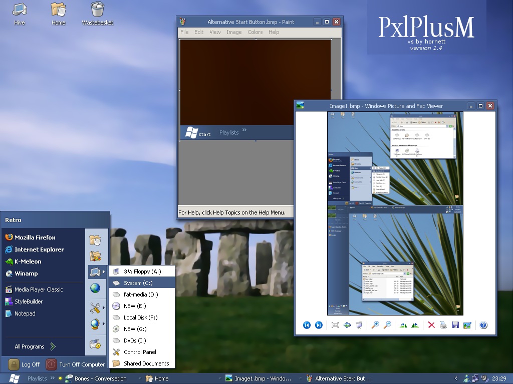 hornett Posted April 5, 2005 Share Posted April 5, 2005 (edited) PxlPlusM A 'modern' version of PxlPlus. And no shellstyle :) Please read the readme file included in the zip file Please actually try it out, rather than judge it on the screen shot... It looks better in real life! :) Download here :) Edit: Added picture of theme with normal height taskbar UPDATE: Added new start button and slimmed down scrollbars! UPDATE2: Slimmed almost everything down! UPDATE3: Added thin taskbar! UPDATE4: Added compact start menu!! + various other fixes (sorry about jpeg quality on preview) Edited April 7, 2005 by hornett Link to comment Share on other sites More sharing options...