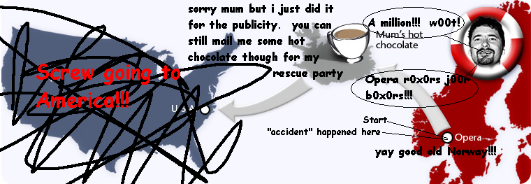 zachman123 Posted April 27, 2005 Share Posted April 27, 2005 That animation doesn't prove anything, it's just from some guy's journal on Opera. I do think he's going to actually try and cross the Atlantic... but I'm sure he's use something to cheat in some way. 585837809[/snapback] They already gave up, in case you didn't see... http://opera.com/swim/ "I have always dreamt of swimming to America, and I really thought this was my golden opportunity," says Mr. von Tetzchner. "Both the raft and the PR manager were accidents waiting to happen; it is just too bad they had to happen at the same time. He does a good job when he sticks to what he knows, though, so I don't see any reason to let him go. However, I hope people will remember me for the willingness to try rather than this embarrassing incident with the punctured raft. And my mother will be so disappointed when I call and tell her that I won't be stopping by for hot chocolate after all." Link to comment Share on other sites More sharing options...