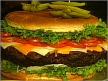 Hum Posted May 6, 2005 Share Posted May 6, 2005 NEW YORK (CNN/Money) - A Pennsylvania restaurant put a 15-pound burger on its menu, claiming the largest burger available anywhere. Dennis Liegey, the owner of Denny's Beer Barrel Pub in Clearfield, 120 northeast of Pittsburgh, said the "Beer Barrel Belly Buster" weighs in with 10 pounds of meat molded into a 20-inch patty on a specially baked, 17-inch bun. :woot: The balance of the weight comes from 25 slices of cheese, a head of lettuce, three tomatoes, two onions, plus copious quantities of mayo, ketchup, relish, mustard, and peppers. Any two people who can eat it within a three-hour sitting get it for free. For everyone else, it costs $30. "We've been running a burger challenge since 1991," said Liegey. "It started out with two- and three-pound patties, and went to a six-pounder in 1998 with five pounds of toppings." Over the years Liegey said he has sold more than 10,500 of the two- and three-pounders, and 853 of the six-pounders. He has kept careful count of how many diners have finished each offering: 256 ate the whole two-pounder and 39 finished three-pounders. And last February, one person, a 100-pound female college student, Kate Stelnick, from Princeton, New Jersey, ate the entire six-pounder. (The burger with toppings represented 11 percent of her body weight.) The 15-pound burger can feed a family of 10, according to Liegey. He has sold two so far to teams of two people, and neither team did much more than put a dent in it. source & video: http://money.cnn.com/2005/05/03/pf/biggest...dex.htm?cnn=yes Link to comment Share on other sites More sharing options...