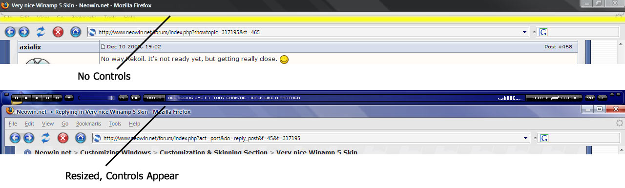 AbandonedTrolley Posted December 19, 2005 Share Posted December 19, 2005 Abandoned, it must be that WB style you're running that's causing the skin to disappear. Have you tried changing styles to see if they cause the same error? Problem solved, seem's it was a combination of the skin and also having played full screen games. The winamp skin was fine with the theme, until I played a game and came back out, from then onwards the Winamp lost all its buttons against a maximised window. :blush: Link to comment Share on other sites More sharing options...