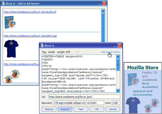 carpediem Posted May 23, 2005 Author Share Posted May 23, 2005 This plugin lets you remove whole chunks of code/images on a webpage of your choice. You would want to use this together with ad blocking software to easy get rid of whole tables, divs, ids, etc on a page.Mark a section on a web page, right click and choose "BlockIt. Anyone that hates ads should definately test this plugin. :) http://forum.maxthon.com/forum/index.php?s...33entry133833 585890191[/snapback] Version 1.10 has been released Changes - user can send the frame url to Ad Hunter if he wants to remove the entire content of a frame; - list unfiltered images and flashes contained for adding to the content filter of Ad Hunter; - the mask can position on top of layers properly; - improve layout of the Edit Rule dialog; http://forum.maxthon.com/forum/index.php?s...ndpost&p=137988 Link to comment Share on other sites More sharing options...