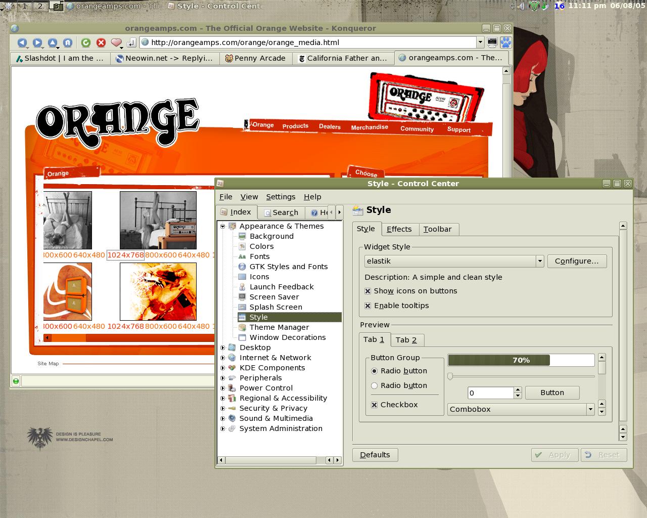 chavo Posted June 9, 2005 Share Posted June 9, 2005 Haven't changed much in the last month or so. I downloaded Enemy Territory about a month ago and have been playing ever since. It's my first online gaming experience and it's very addictive. Anyway I'm running KDE 3.4.1. The style is called elastik, it's a simplified version of plastik that I'm working on. The Window Decorations are a hacked version of Smooth Blend that I will release with the elastik style when both are done. Link to comment Share on other sites More sharing options...