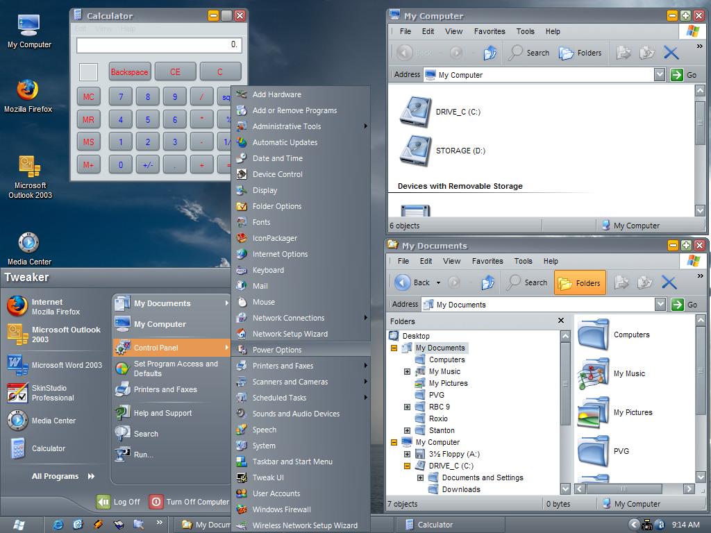 Tweaker Posted June 30, 2005 Share Posted June 30, 2005 Any chance of a WindowBlinds port in the near future? 586091778[/snapback] Here's a screenie of the WB version that I moded. In doing the mod I started with the compact version because I like the thinner taskbar. I then expanded the compact Startmenu to full size. The standard full size Startmenu's are 380. To me that's to wide. The one shown is 340. As you can see the Start button has been changed to the LH Flag. The most of fonts were changed to the LH Segoe UI font. I fixed the treenode to include the plus & minus and lightened the gray on the plus so it could easly be read. The button was resized so that the caculator buttons display correctly. Since Valkyre has made this an open source VS you can pm me if you want the WB version. I've done this with both the BlackMesa and BlueMesa versions. Or as someone else suggested you can download Skinstudio and make you own version. Link to comment Share on other sites More sharing options...