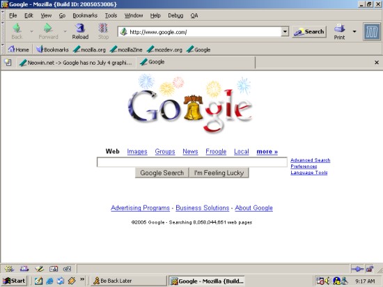 WigglesTheFish Posted July 4, 2005 Share Posted July 4, 2005 This is the Google logo I get when i go to Google... Link to comment Share on other sites More sharing options...
