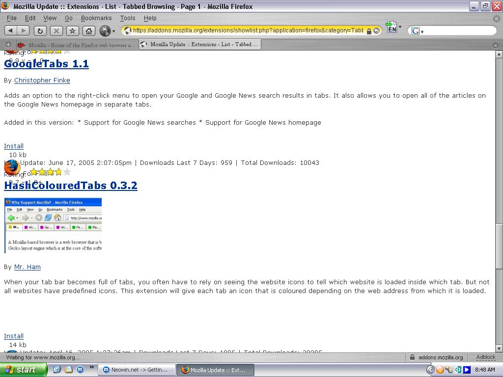 Xhui Posted July 21, 2005 Share Posted July 21, 2005 (edited) hi, i need some help on firefox...like how can i make my tab smaller? how can i make the favorites icon show text on the right and only the favorites icon show text and the back icon like the way you can make in IE? than i click a URL from bookmark/favorites it overwrite the tab im showing..is there a way to make that URL open in new tab? another thing is...look at this..is this normal ? if not how to fix it? Edited July 21, 2005 by Xhui Link to comment Share on other sites More sharing options...